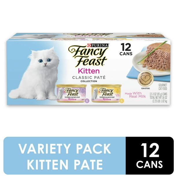 12 Pack Fancy Feast Grain Free Pate Wet Kitten Food Variety Pack Kitten Classic Pate Collection Chicken Salmon 3 Oz Cans Walmart Com